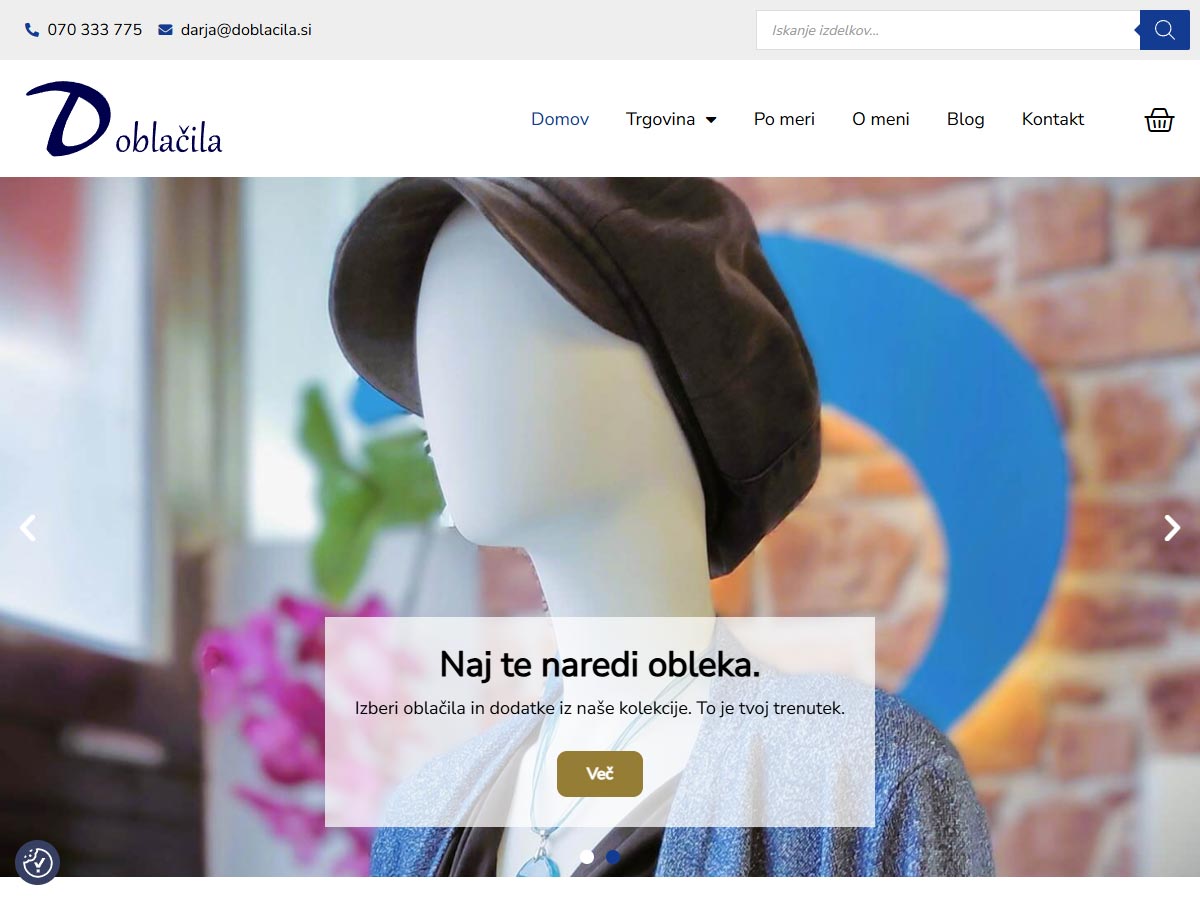 Izdelava spletne trgovine doblacila.si, namenjene prodaji unikatnih oblačil, modnih dodatkov in kosov po meri, s poudarkom na kakovosti, domiselni izvedbi ter osebnem pristopu do kupcev.